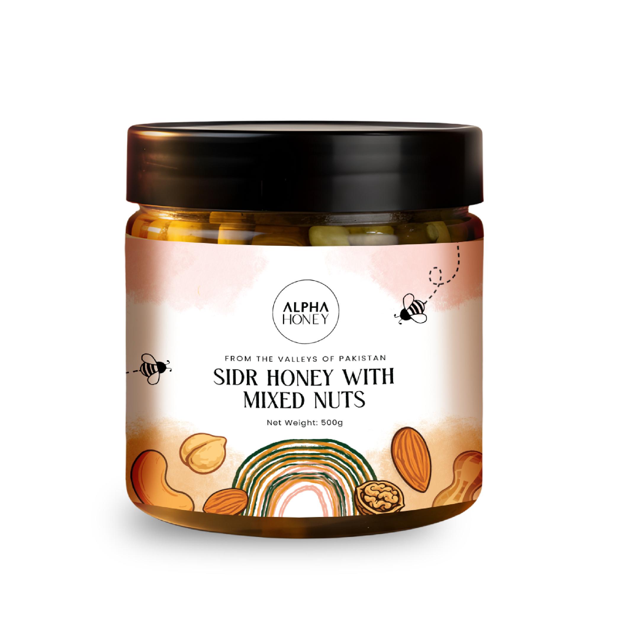 Experience the ultimate synergy of flavor and nutrition with Alpha Organic Premium Sidr Honey with Mixed Nuts. This luxurious blend combines the profound medicinal power of pure Sidr Honey with a generous mix of the highest quality nuts, including Almonds, Walnuts, Cashews and Pistachios.